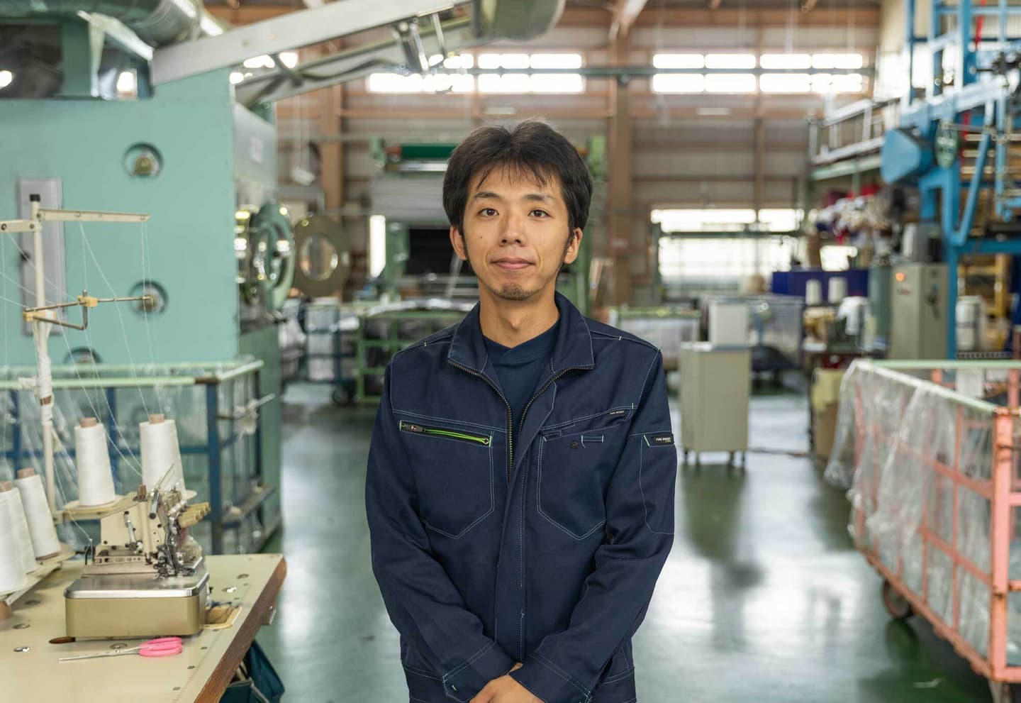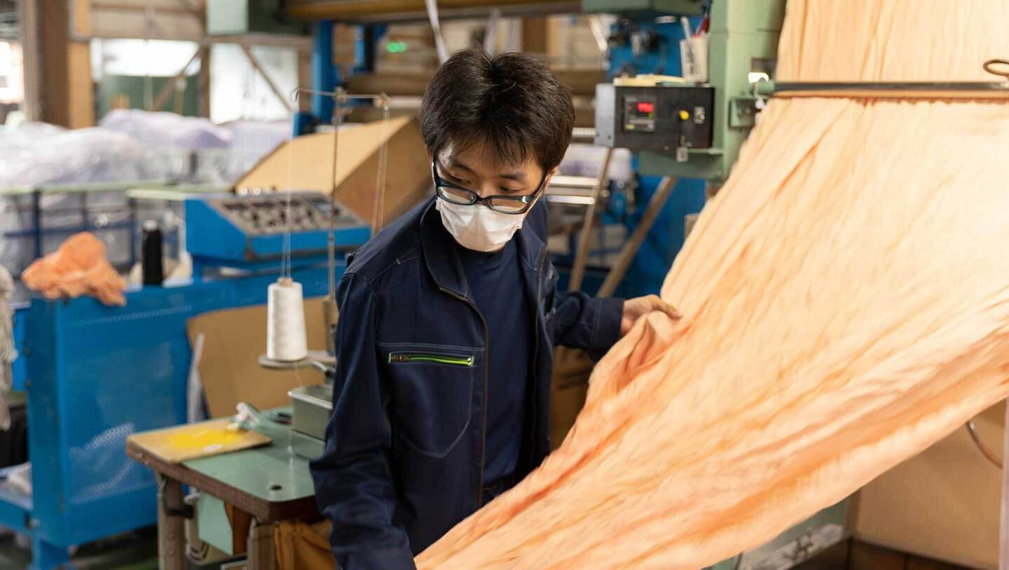 生地の後加工全般をしています。主にエアフロー加工・シワ加工を担当しています。